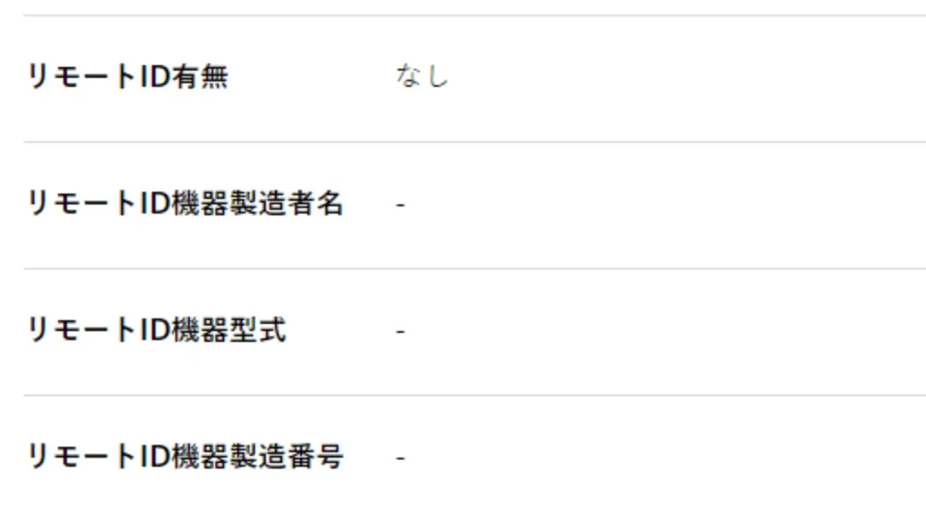 私の場合はたまたまMini3 Proが機体登録の時にリモートID有無で「あり(内蔵型)」を選択すると知っていたため、もしかしたら「なし」で機体登録されていると紐付けできないのでは?と思い試してみたところ想定通りでした。